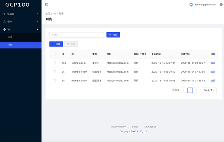 GCP100是一种云服务,您不需要部署服务器或安装软件,您只需通过别名(CNAME)将域名解析至我们分配的服务器即可享受服务,服务器和网络由GCP100平台负责管理与维护!